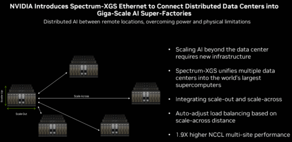 Ahead of next week’s Hot Chips 2025 conference in Palo Alto, NVIDIA today announced Spectrum-XGS Ethernet, which the company calls a scale-across technology for combining multiple, distributed data centers into “unified, giga-scale AI super-factories.”